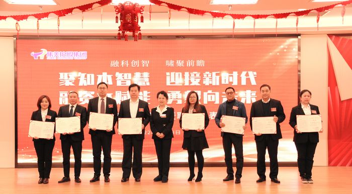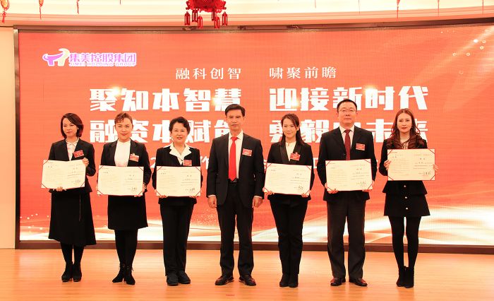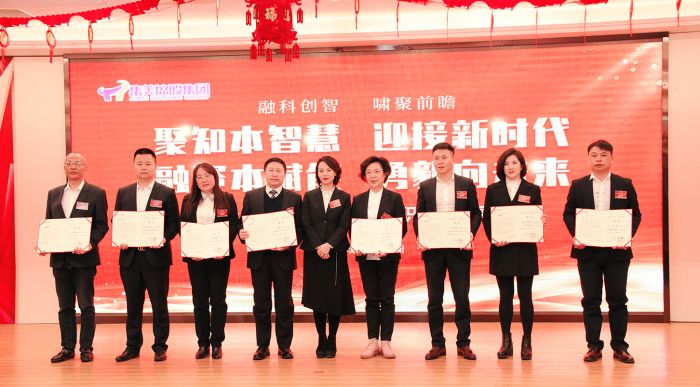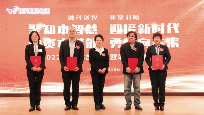 赛博体育saibo集团董事长兼总裁赵建国、执行总裁刘志萍,运营总裁赵婧,分别宣布了2022年集团常委、有关领导及顾问、各商场总经理、集团职能部门、产业领导、财务团队负责人和大健康管理事业部负责人任命名单并颁发聘书。